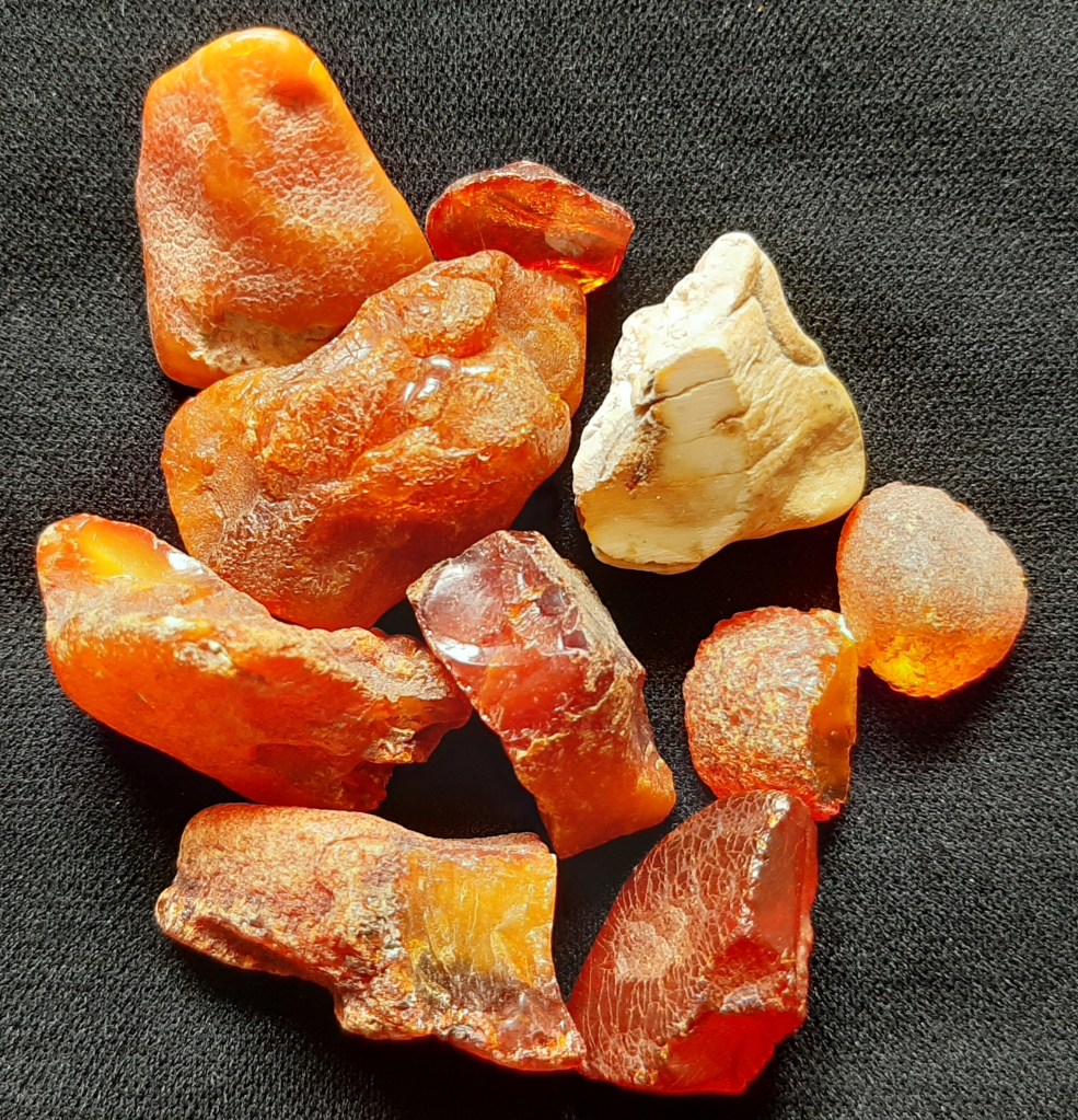 En dan mogen we de barnsteen niet vergeten die in de noordelijke helft van ons land gevonden kan worden en langs de hele Noordzee kust. Ooit in het Tertiair afgezet in het Oostzeegebied en door de gigantische Eridanos rivier, ijstijd gletjers en de zee meegevoerd naar Nederland. Met een beetje geluk kun je dit op de Waddeneilanden vinden aan het strand. Om het te vinden aan het Noordzee strand heb je nog iets meer geluk nodig. En het is te vinden in de verschillende zand en grindgroeves in Noord Nederland.