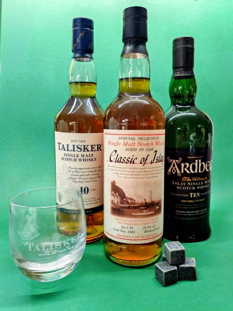 Het eiland Islay is maar een heel klein gebied, maar hier vinden we een heel aantal bekende en goede whisky’s. Ardbeg, Lagavulin, Laphroaig, Caol Ila zijn er een paar. En laten we niet Port Ellen vergeten. Ooit één van de beste distilleries, daarna werd het een grote mouterij en sinds kort proberen ze weer single malts op de markt te brengen.