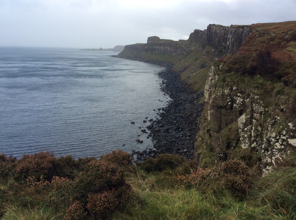 Een heel ander geologisch verhaal vinden we in het westen op een aantal van de eilanden. Allereerst Skye, thuisbasis van onder meer de bekende Talisker whisky. In geologisch opzicht is Skye een kleuter vergeleken bij de ouderdommen die we tot nu toe tegen zijn gekomen. Het eiland bestaat uit Jura gesteente en voor een groot deel uit Tertiaire basalt, dit is afkomstig van vulkanisme dat jonger is dan het uitsterven van de dino’s (waarvan we ook bewijs vinden op Skye in de vorm van voetstappen bij Staffin Bay). Dit vulkanisme vond plaats net na het einde van het Krijt en was het gevolg van het uit elkaar drijven van wat we nu kennen als Amerika en Europa, dus het ontstaan van de Atlantische Oceaan. Dit zorgde voor gigantische pakketten basalt, niet alleen op Skye, maar ook Ardnamurchan, Arran, Mull, Staffa (de bekende Fingal’s Cave), een deel van Rum en de Noord-Ierse kust (Giant’s Causeway, Mourne Mountains). De Talisker distillerderij ligt bij het plaatsje Carbost bij de Talisker baai (waar je erg leuke mineralen kunt vinden in het basalt) en haalt het water van verschillende bronnen op de Cnoc nan Speireag, een heuvel naast de distilleerderij. Dit water stroomt door turf en dat is terug te vinden in de smaak. Er zijn een paar meer distilleerderijen op Skye, onder andere Torabaigh en Broadford distilleries.