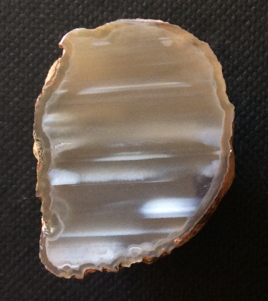 – Botswana agaat is een erg mooi gekleurde en gebande soort agaat uit…. ja Botswana. Vaak met grijs en roze tinten. Veel agaten worden net als Botswana agaat naar hun vindplaats genoemd, zoals bijvoorbeeld Fairburn agaat, Lake Superior agaat en Lagune agaat.