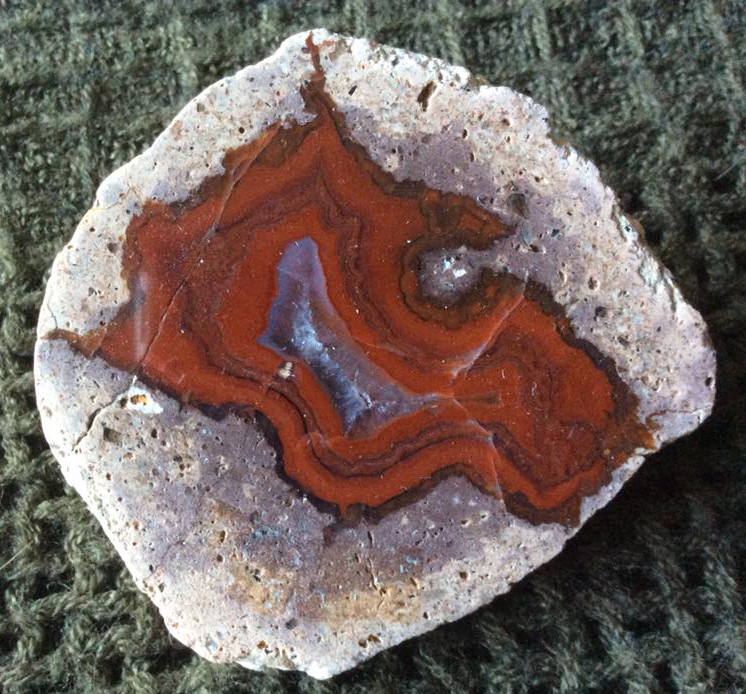 – Jaspis agaat of agaat jaspis is een tussenvorm, jaspis met agaat of andersom. Waar de grens tussen jaspis en agaat ligt is niet altijd even duidelijk.