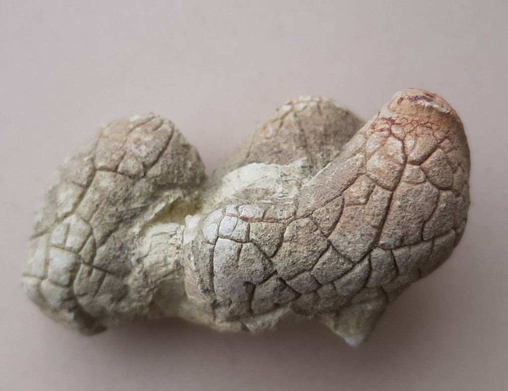 – Turritella agaat is chalcedoon met fossiele slakjes. De meeste turritella agaat bevat trouwens geen Turritella’s, maar hele andere zoetwaterslakjes, namelijk Elimia’s.
