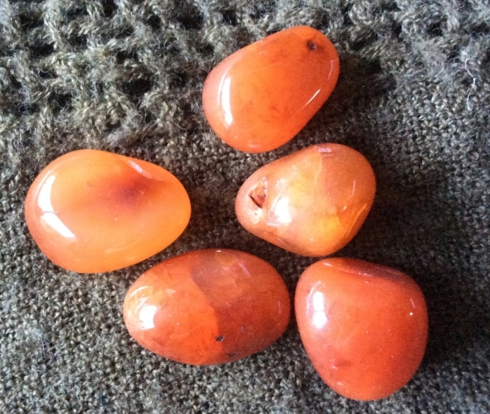 – Carneool (kornalijn) wordt vaak ook tot de agaten gerekend. Officieel noemt Mindat het een aparte soort onder de chalcedonen. De naam carneool gebruiken we (strikt genomen onterecht) voor de rode variant van agaat. Het is soms erg lastig om te zeggen wanneer iets carneool is en wanneer agaat. Is het meer rood-bruin tot bruin wordt het sarder genoemd. In beide gevallen word de rode en bruine kleur veroorzaakt door ijzer-oxide verontreinigingen in de SiO2.