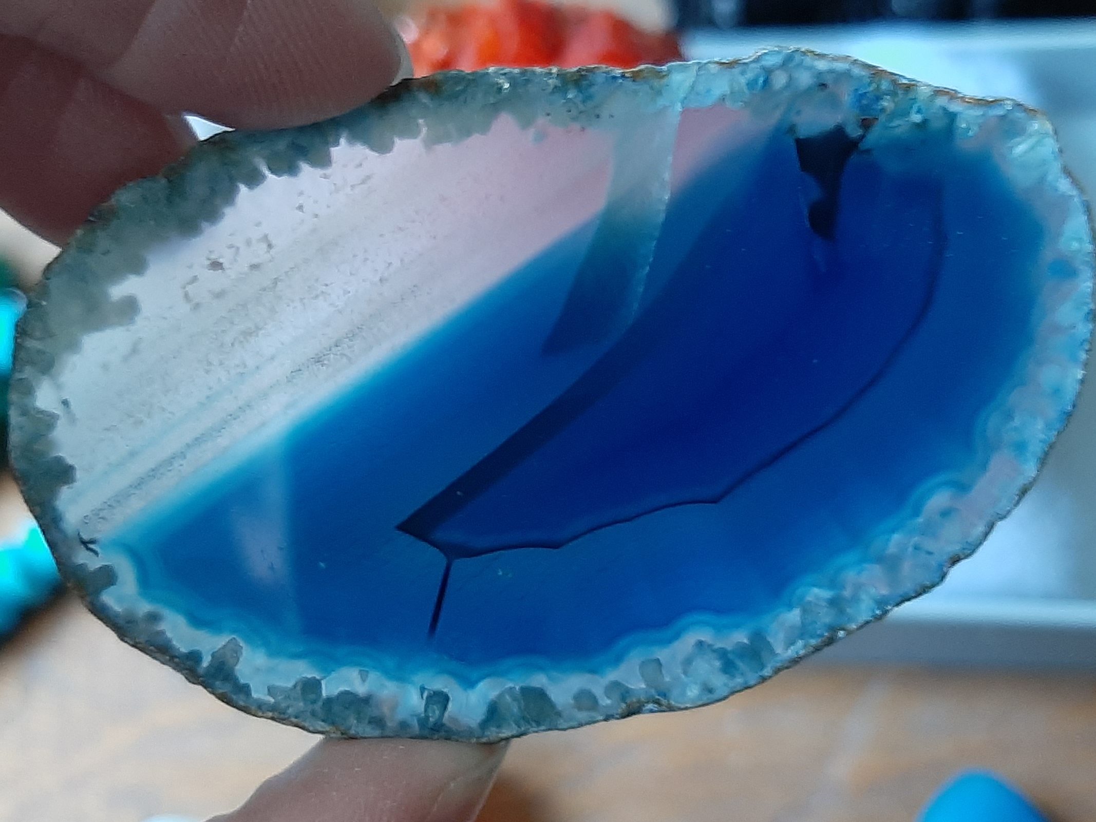 Het (bij)kleuren van agaat is al zo oud als de mensheid (ok, ietsje jonger..,.). De Egyptenaren kleurden rode agaat roder, er is een bijgekleurd exemplaar gevonden in de tombe van Toetanchamon. De Perzen en Indiers hadden de kennis en de middelen om dit te doen en ook Plinius de Oudere beschreef een manier om door een chalcedoon in honing te koken bij te kleuren. In de 18e en 19e eeuw werd dit bijkleuren van agaten geperfectioneerd door de edelsteenslijpers in Idar-Oberstein. Agaten bestaan uit verschillende banden en iedere band/laag heeft een andere porositeit en textuur. Dit zorgt er voor dat iedere band op een andere wijze de kleursubstantie die gebruikt wordt om bij te kleuren opneemt en er ook na het kleuren kleurverschil is in de lagen. Toen ik in de jaren ’90 in Idar-Oberstein voor het eerst bij verschillende edelsteen slijperijen kwam stonden daar standaard grote glazen potten gevuld met agaten en een kleurmengsel op de kast. Allemaal ‘geheim recept’ als je vroeg hier dit precies gedaan werd. Maar sinds de invoering van het internet bestaan er nog maar weinig echte geheimen.