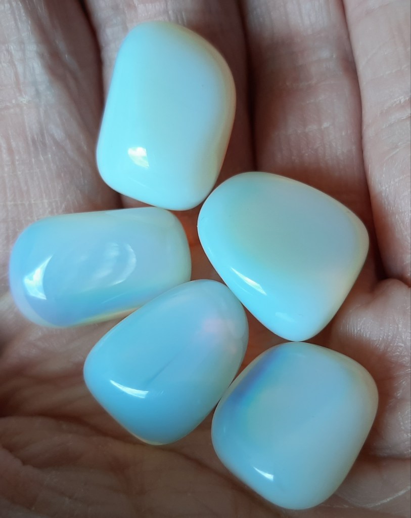 Opaliet: Dit is man made glas en wordt vaak verkocht als opaal of maansteen. Ze noemen het soms ook zee-opaal. Er zijn winkels die beweren dat het gemaakt is van gesmolten opaal, maar dat is niet waar. Hier een video met uitleg