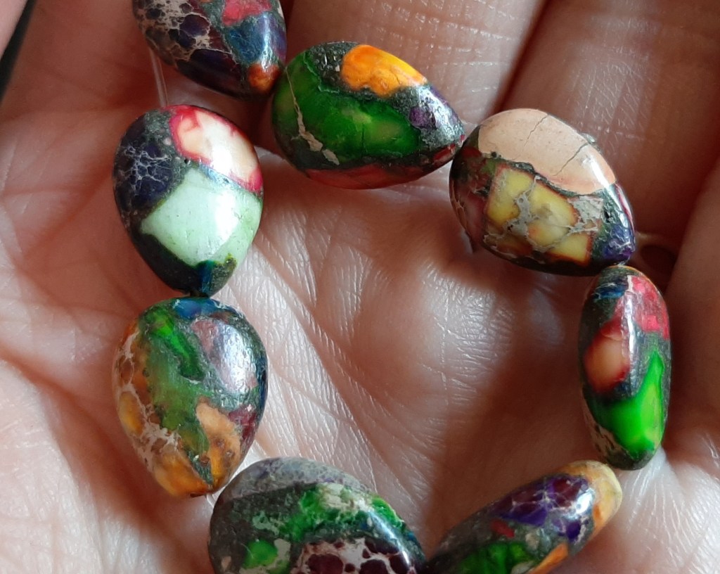 Turkoois: Turkoois/turquoise is vaak geverfde howliet of geverfde magnesiet. Vooral kralen zijn in 99% van de gevallen niet echt. De verf is erg hardnekkig en lastig aan te tonen helaas. Klik hier voor een video over fake turkoois.