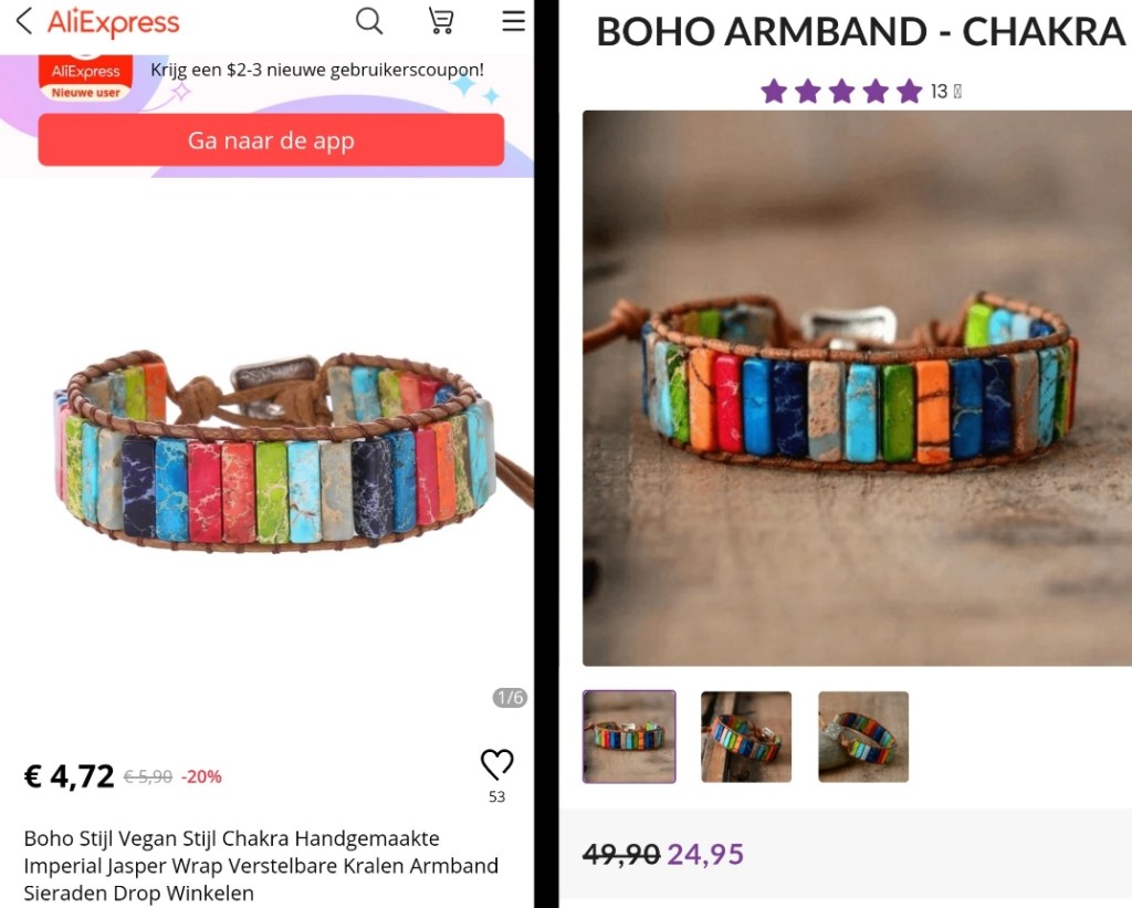 Kralen en sieraden zijn erg lastig. Veel kralen van Ali zijn niet wat ze lijken. Vaak zijn ze gemaakt van glas of klei. Zo kocht ik ‘toermalijn’ en ‘granaat’ kralen die gewoon glas bleken te zijn. Hematiet kralen die gesinterde ijzeroxide waren. Jaspis kralen die van klei waren gemaakt. En zo kan ik nog wel even doorgaan. Facetgeslepen ‘stenen’ in juwelen voor 1 of 2 dollar gewoon glas. Druzy kwarts hangertjes die plastic bleken te zijn. Sieraden op Ali kopen is geen goed idee! Hier een video die ik maakte met alle Ali fakes.