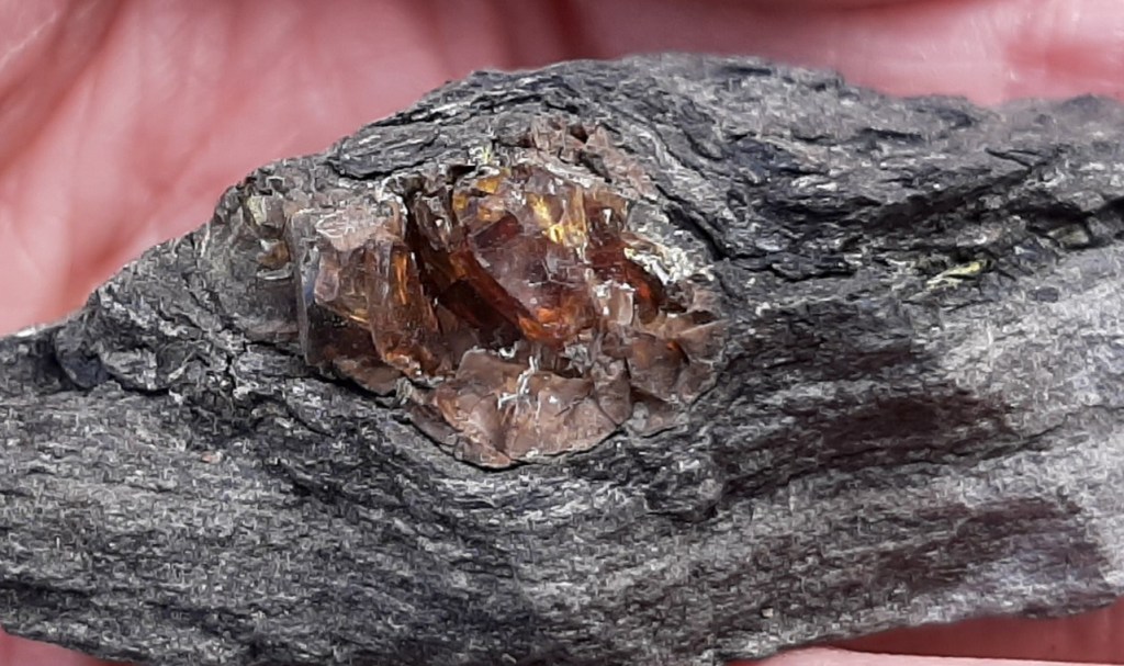 We kennen allemaal wel het verschijnsel van een naaldboom waar hars uitloopt. Het druppelt langs de bast naar beneden. Onderweg komen er allerlei dingetjes vast te zitten in de kleverige hars. Als je zelf wel eens hars aan je handen of in je kleren hebt gehad weet je hoe plakkerig het is. Een insect of spin kan niet meer ontsnappen als het eenmaal gevangen zit. Daarom zit in een vrij groot deel van het barnsteen ‘insluitsels’. De meeste ‘dingetjes’ die je er in ziet zijn plantaardig, maar soms zie je echt insectjes of spinnetjes in de steen. Deze diertjes zijn erg belangrijk bij het determineren van de herkomst en de echt ouderdom van barnsteen. En nee, je kunt er geen DNA uit halen om dinosaurussen tot leven te wekken, tenzij je Steven Spielberg heet.