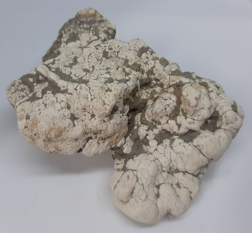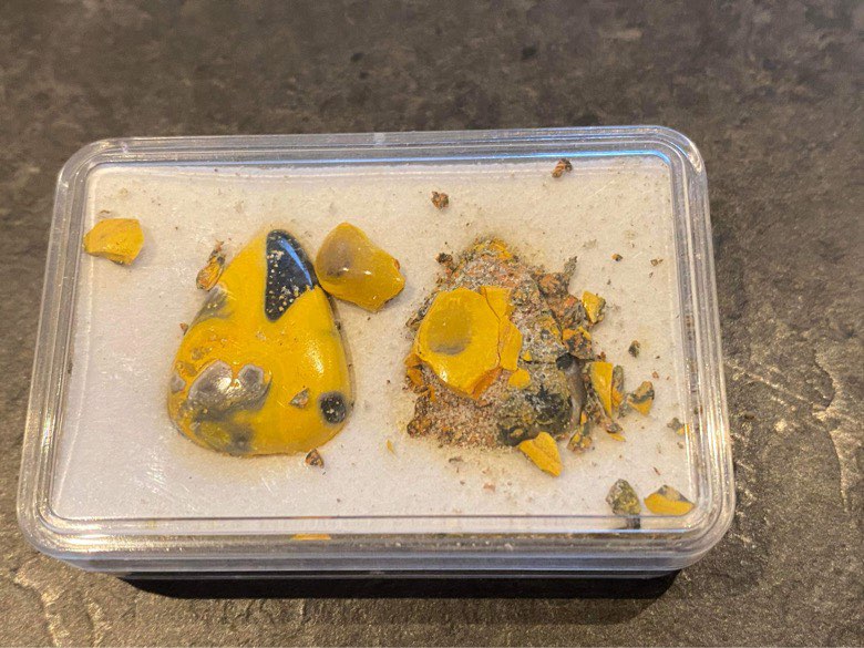 As with bumblebee “jasper”, the realgar within it is also subject to degradation, as shown in the photograph below.