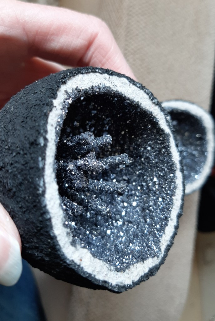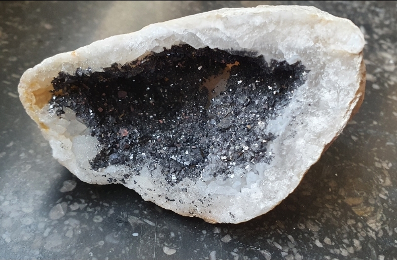 Er zijn twee bekende hematiet ‘fakes’. De eerste zijn de geodes die verkocht worden als galeniet of hematiet geodes. Er zijn twee soorten in. De ene variant is de volledig man-made geode van klei die aan de buitenkant zwart geverfd is en waar binnenin stokjes zijn gestoken. Dit alles wordt aan de binnenkant voorzien van een laag lijm waar gemalen galeniet op geplakt wordt. De andere variant is een bergkristal geode die aan de binnenkant volgeplakt wordt met galenietgruis. Deze ‘geodes’ worden als galeniet of hematiet geodes verkocht.