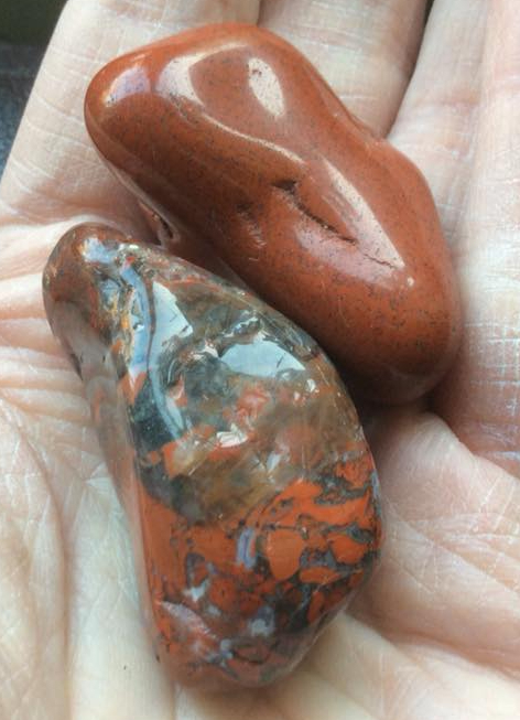 – ‘Gewone’ rode jaspis, deze is ook in Nederland veel te vinden in het riviergrind. Deze soort komt het meest voor. Grote pakketten gesteente kan deze jaspis vormen. Ook veel gevonden in Duitsland. Als je weer eens over een grindpad loopt of langs een tuin met grind, kijk dan eens goed. Zie je een rode steen, 10 tegen 1 dat je een stukje jaspis hebt gevonden.