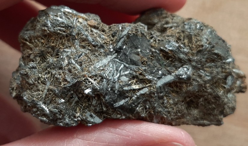 Ik heb als kind gefascineerd zitten kijken naar die zilveren druppels die uit een kapotte thermometer waren gevallen en over de vloer leken te dansen. Kwik is een metaal dan bij kamertemperatuur in zuivere vorm vloeibaar is. In de chemie wordt de aanduiding Hg gebruikt. Als je die letters in de chemische formule van je steen ziet staan, dan weet je dat je voorzichtig moet zijn. In de natuur komt kwik voor als het mineraal cinnaber. Mooie rode kristalletjes. Dit wordt ook gebruikt om kwik uit te winnen voor ons gebruik. Maar kwik is heel erg giftig. Het kan in vloeibare kwikvorm door de huid worden opgenomen. Pas dus met cinnaber mineralen erg goed op. In principe kan de kristalvorm van cinnaber niet zo maar door de huid worden opgenomen, maar massief en vergruisd materiaal kan wel risicovol zijn. Bewaar ze op een veilige manier. Onnodig tet zeggen hoop ik dat dit geen mineralen zijn om aan kinderen te geven.