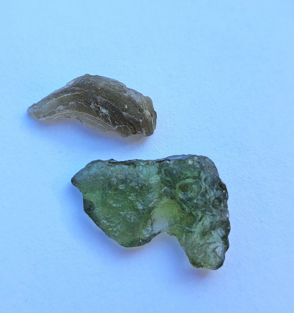 – Ruwe moldaviet heeft een matte glans. Als je een ruw stuk ziet met hooglans, glasglans of een vettige glans mag je er van uit gaan dat het nep is.