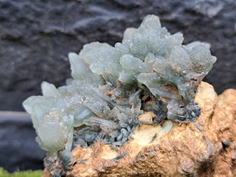 Prase mainly occurs in so-called ‘skarn’. This is a metamorphic rock that is formed when carbonate rock comes into contact with (underlying) hot magma.