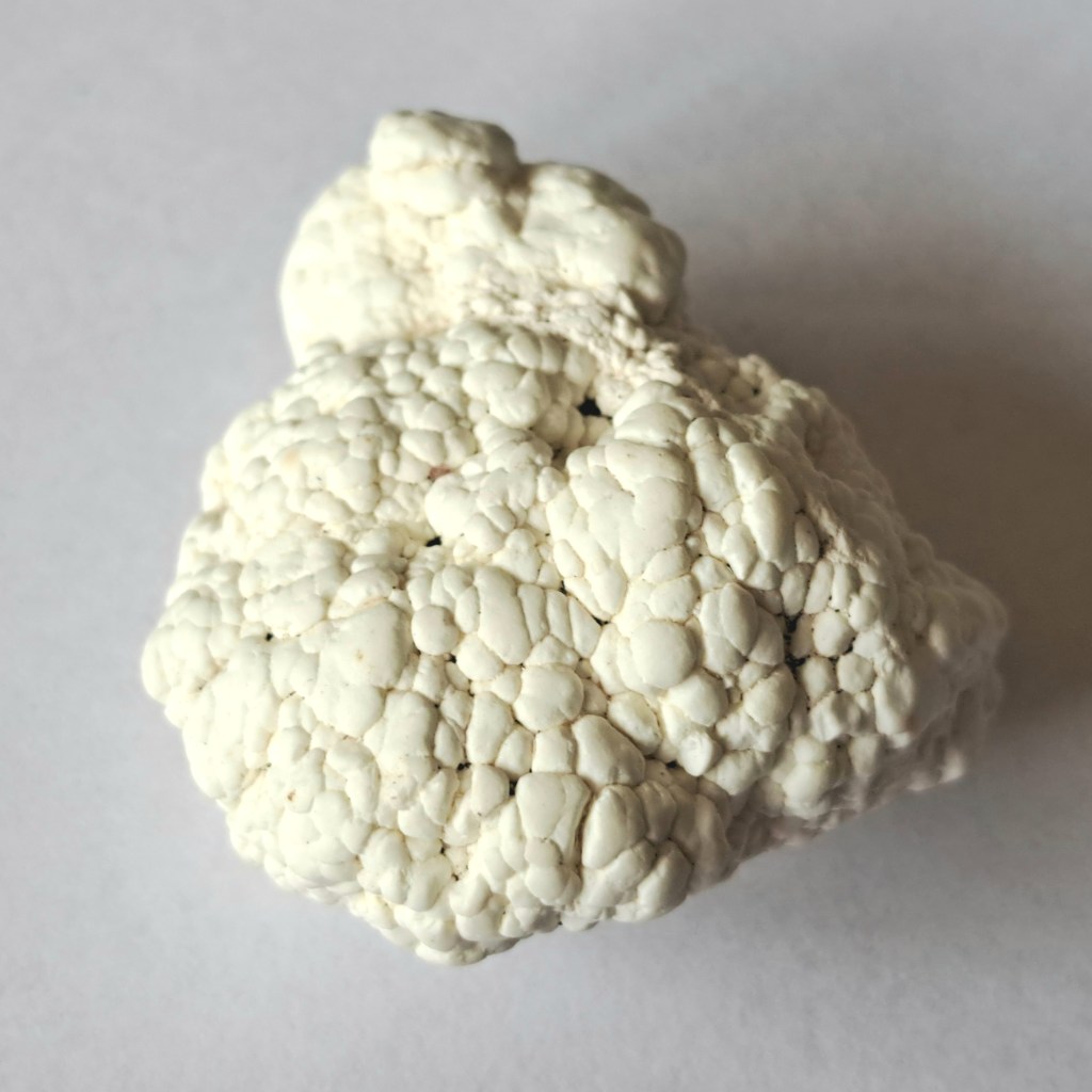 Many of the cheap ‘dyed howlite’ products on the market are, in fact, not solid howlite at all, but instead consist of compressed powders, clay, or chalk. Sometimes black lines are painted to mimic the natural veining seen in real turquoise.